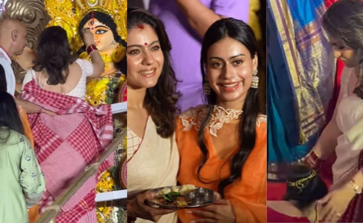 In a viral video, Tanisha is seen touching elder sister Kajol’s feet In a viral video, Tanisha is seen touching elder sister Kajol’s feet    Â